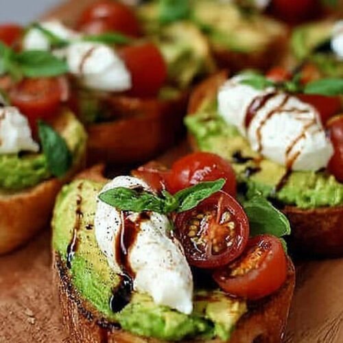 I make this bruschetta recipe when I want a calm start and real flavor. I mash ripe avocado. I tear cool burrata. I spoon a bright mix over warm toast. The bite feels light and rich. The smell of garlic lifts the room. We smile before the first crumb falls. This plate fits many moods. I call it my best bruschetta recipe on slow Sundays. The build stays easy so it works as a simple bruschetta recipe on busy days. Tomato brings snap and color for a fresh bruschetta recipe that tastes like a market walk. Some days I add soft sauteed mushrooms and turn it into a mushroom bruschetta recipe with extra depth. On family nights we lean into stretchy cheese and enjoy a cozy bruschetta recipe mozzarella vibe. If you love the basil tomato cheese trio you will like this caprese bruschetta recipe too. I toast bread till the edges sing. I rub one clove on the hot side. I add the creamy mix and a squeeze of lemon. I finish with basil and a small drizzle of good oil. The crack of the crust meets cool cheese and lush avocado. It is the kind of small joy we all need.