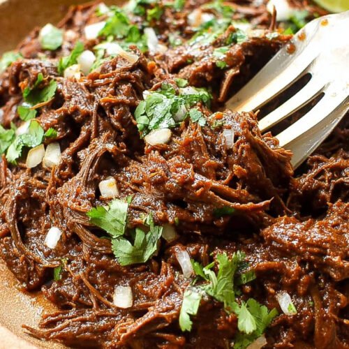 Store leftovers in a tight container with enough sauce to cover the strands. The meat keeps well in the fridge for up to four days. It tastes rich on day two when the spices settle and mingle.