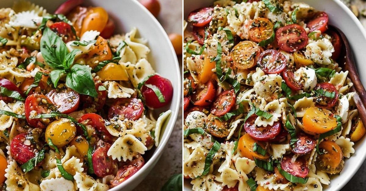 Bruschetta Recipe Pasta Salad with Fresh Tomatoes and Mozzarella