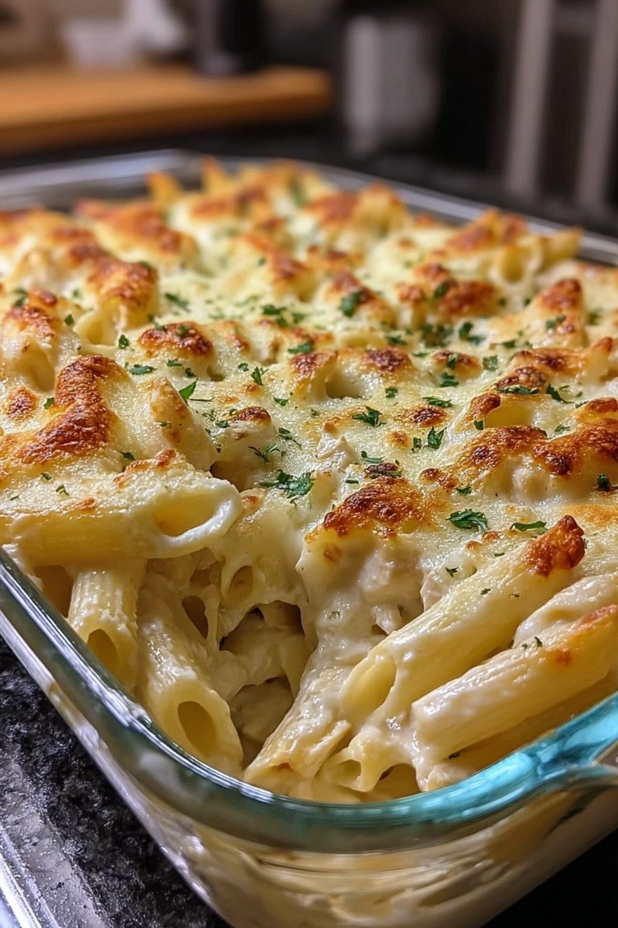 2) Easy Chicken Alfredo Pasta Bake Recipe