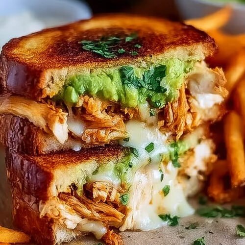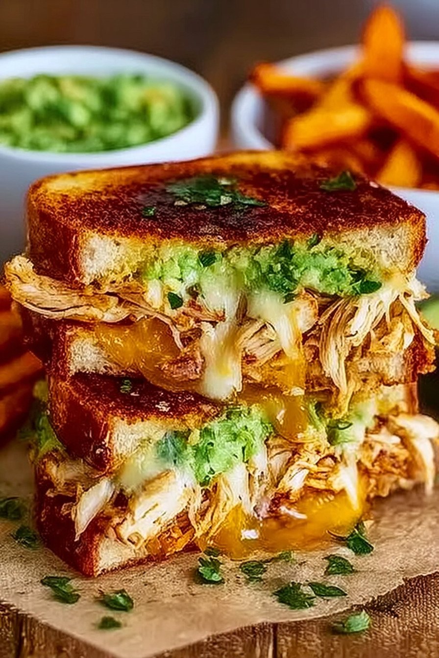 I keep a short list of meals that rescue a busy evening. This chicken avocado melt sits near the top. It lands right in the comfort zone of sandwich recipes that feel simple yet full of flavor. A warm slice of bread, juicy chicken, creamy avocado, and a blanket of melted cheese turn a quick meal into something we all look forward to. I made it one night after a long day when the fridge looked almost empty. A leftover chicken breast and a ripe avocado saved dinner. Good sandwich recipes rely on balance. Tender meat meets crisp bread. Warm cheese melts into the chicken. The avocado brings a calm rich bite that ties it all together. When the skillet heats and the bread turns golden the smell drifts through the kitchen and people wander in to ask what is cooking. That moment tells me dinner will be easy and good. This idea fits many cravings. It works with roasted chicken grilled chicken or the filling from shredded chicken sandwich recipes. Fans of best chicken sandwich recipes or quick dinner sandwich recipes will feel right at home here. You can swap in chicken thighs if that is what you love from chicken thigh sandwich recipes. In our house we keep it simple toast the bread press the sandwich and slice it hot.