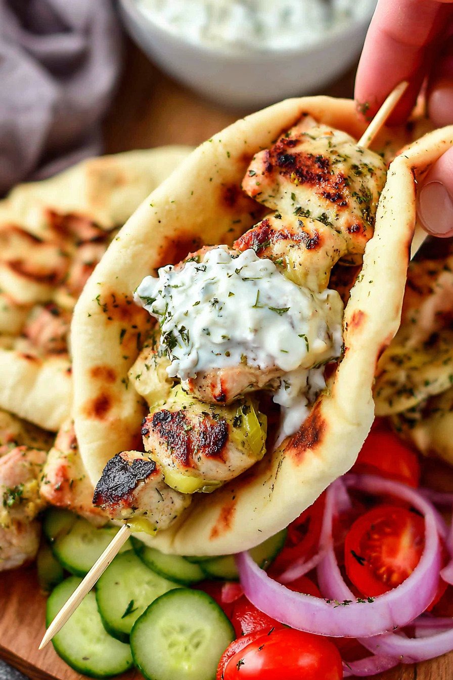 I make this on repeat when the grill calls my name. Grilling Recipes lead the way, and chicken on skewers never lets us down. The meat tastes bright with lemon and herbs. The smoke kisses each bite. We tuck it into warm pita with cool tzatziki and crisp onions. Simple food that feels like a small trip. You might plan a cookout and still want options. I test ideas next to the fire. Bbq Chicken Legs Crockpot sits ready inside. Best Grill Recipes pull us outside. Bacon Wrapped Chicken Bites vanish fast. Boneless Skinless Chicken Thigh Recipes keep the grill busy. Baked Chicken Breast Recipes save a weeknight. Barbecue Food Ideas fill the table, but this stays the star. I keep the prep calm and clean. We whisk the marinade. We soak the chicken and wait a bit. We thread the pieces and cook them hot. I slice tomatoes and onions. I spread thick tzatziki. I stack the pita. We eat while it is warm and juicy. If leftovers make it to tomorrow, they find a salad or a rice bowl.