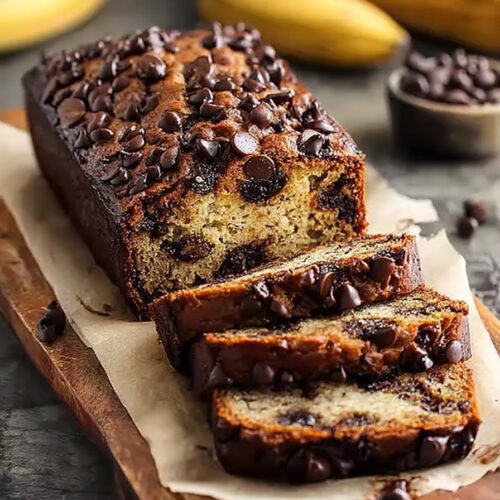 Keep the loaf at room temp in a sealed box for two to three days. Add a small sheet of parchment between slices to keep chips from sticking. The flavor stays true and the crumb stays soft.