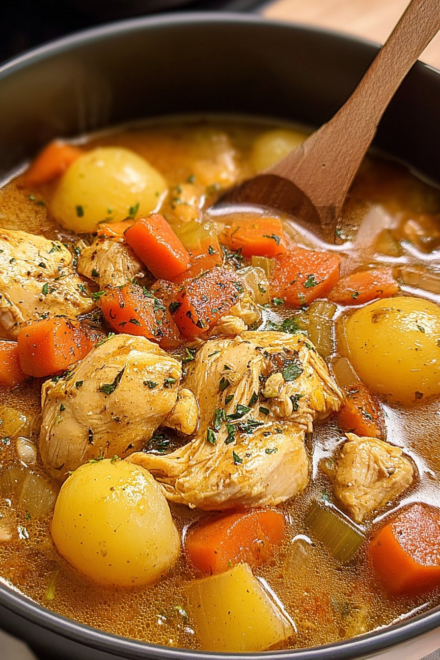 We use a slow cooker or a gentle pot on the stove. Chicken turns tender. Veggies grow sweet. Broth tastes rich. Crusty bread loves this stew. I grew up with a pot like this on cold Sundays. I chase that same steam in my own kitchen.