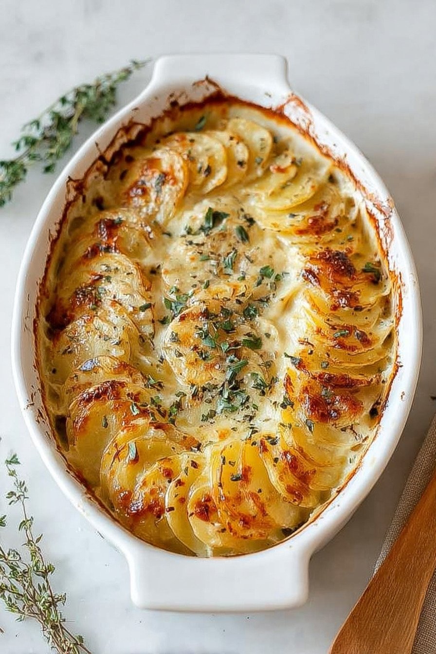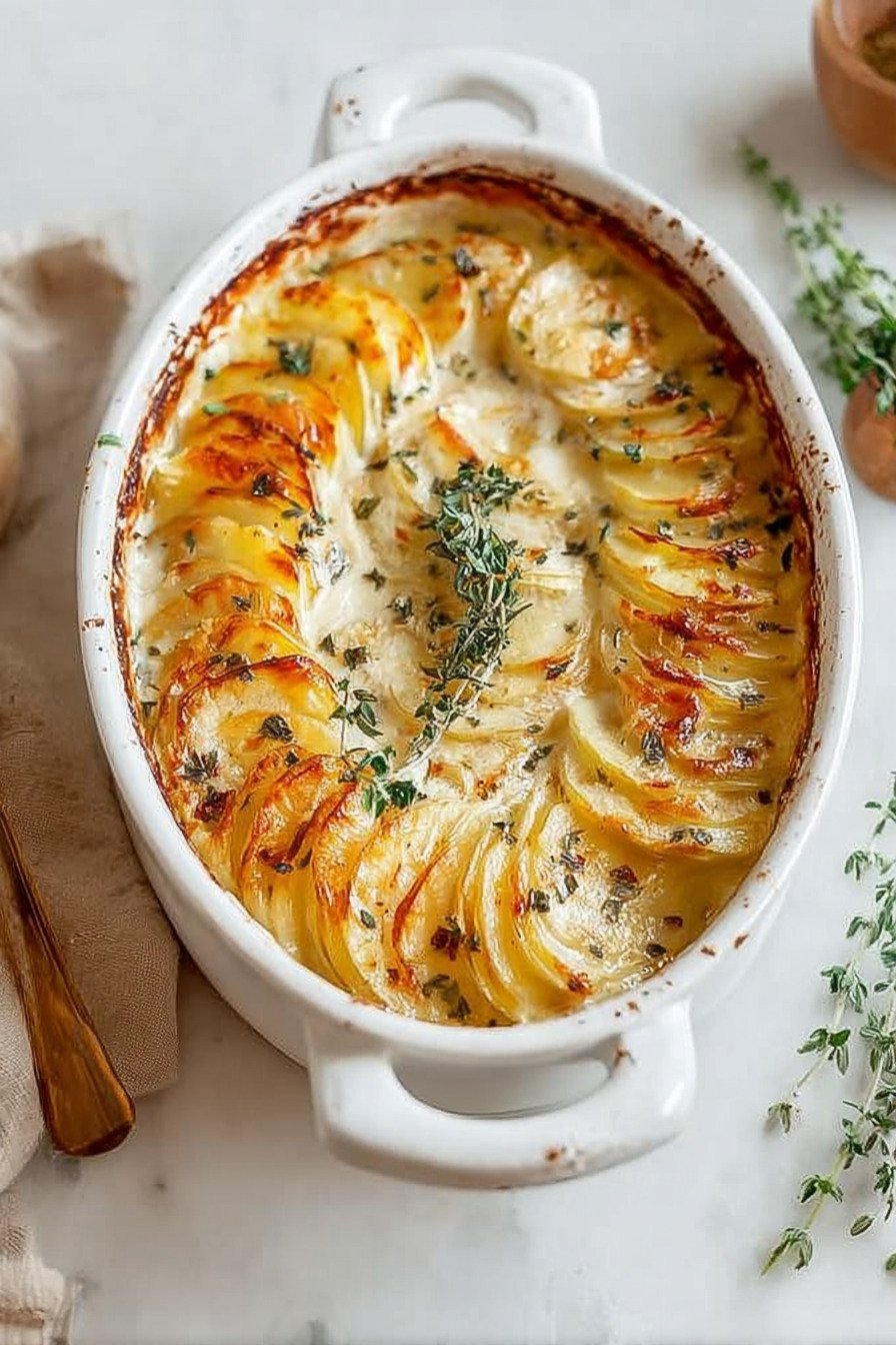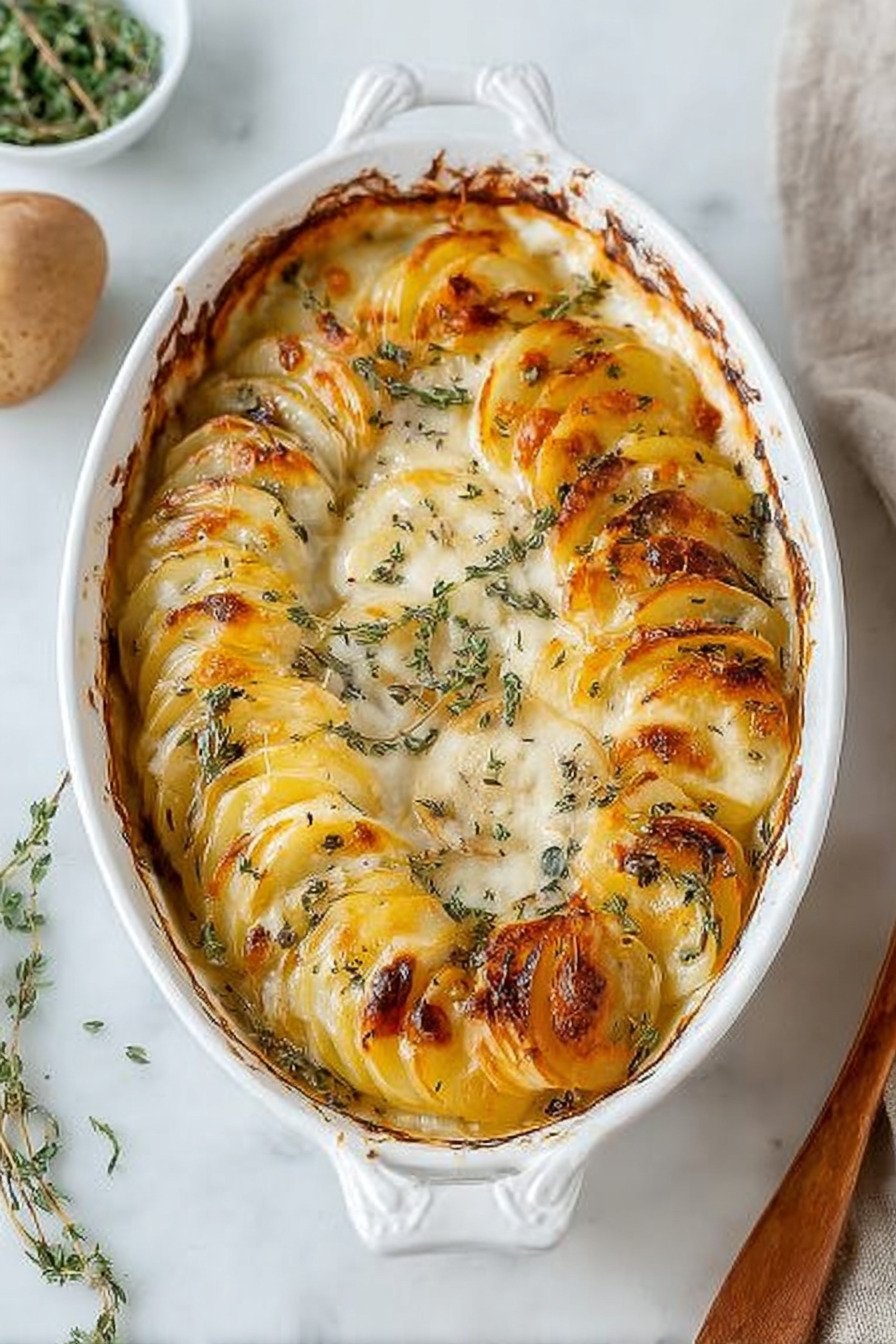 Let the dish rest. Ten minutes on the counter helps the creamy potato gratin settle. When you scoop too soon, the layers slide. Patience pays off here.
