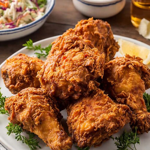 I often prep this fried chicken legs recipe a day early. I soak the chicken and mix the flour blend. That saves time on busy evenings.