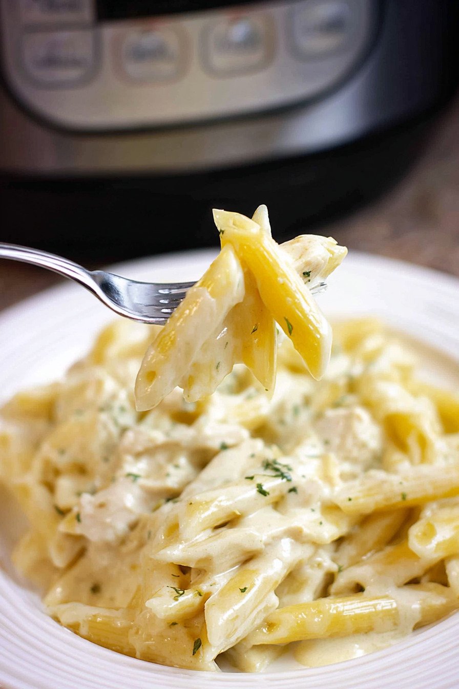 One serving gives hearty fuel. Protein from chicken. Carbs from pasta. Fat from cream and cheese. The bowl feels rich, so a small side of greens balances the meal.