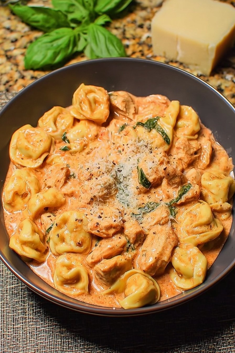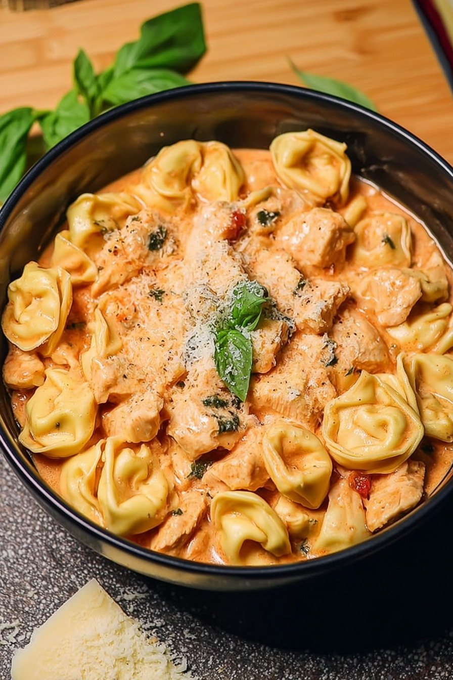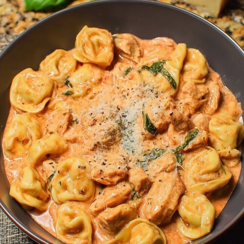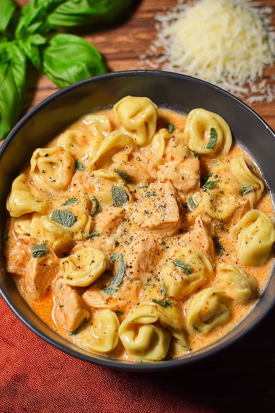 Batch cooking helps on weeks that run long. Cook the chicken and sauce on day one and hold the pasta back. Chill the base in a sealed box. Reheat on the stove set to low and add a splash of broth to loosen. Then fold the tortellini in fresh so the pasta stays lively.