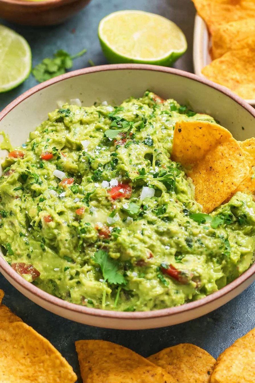 This guacamole recipe began as a quick snack idea. One afternoon I cut open two avocados, squeezed lime over them, and mashed the mix with a fork. The smell alone pulled my family into the kitchen. We stood around the bowl like kids near a cookie jar.