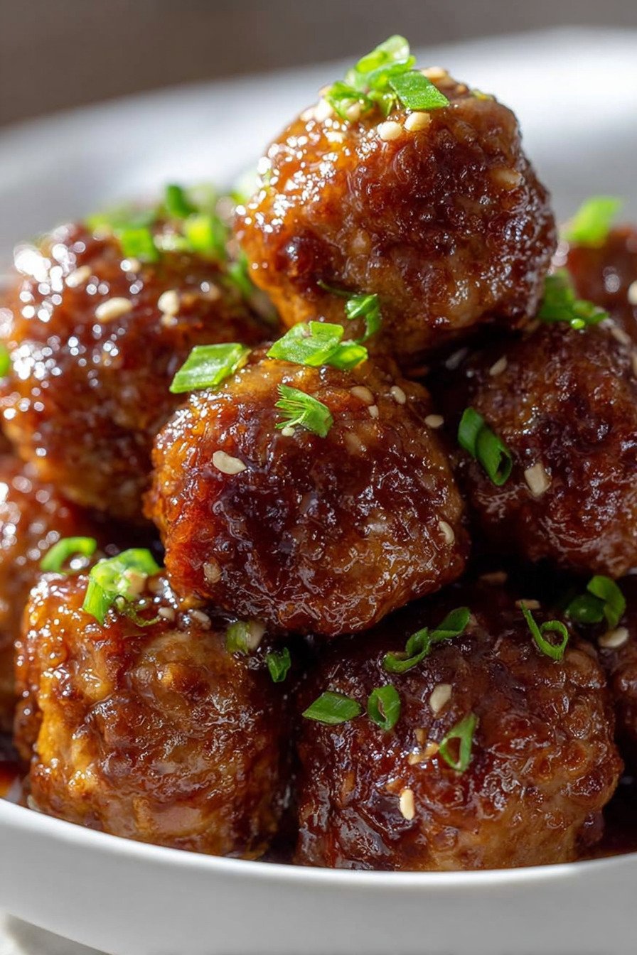 Step 5 Spoon meatballs into a serving dish. Sprinkle green onions and sesame seeds on top. Serve warm and watch plates empty fast.