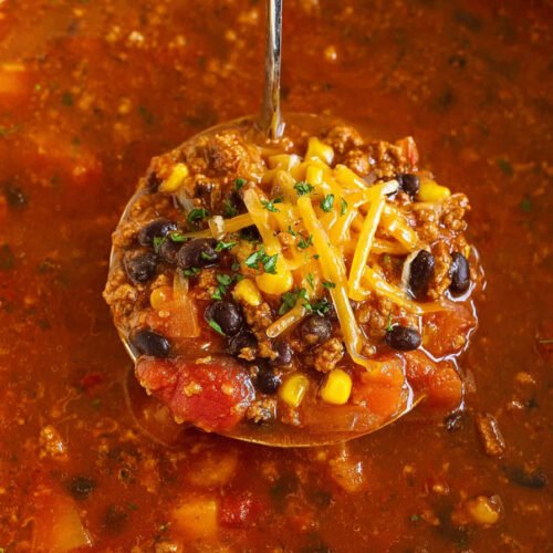 Ground Beef gives the soup body and rich flavor. I cook it until browned and crumbly. It builds the base and holds the spice well.