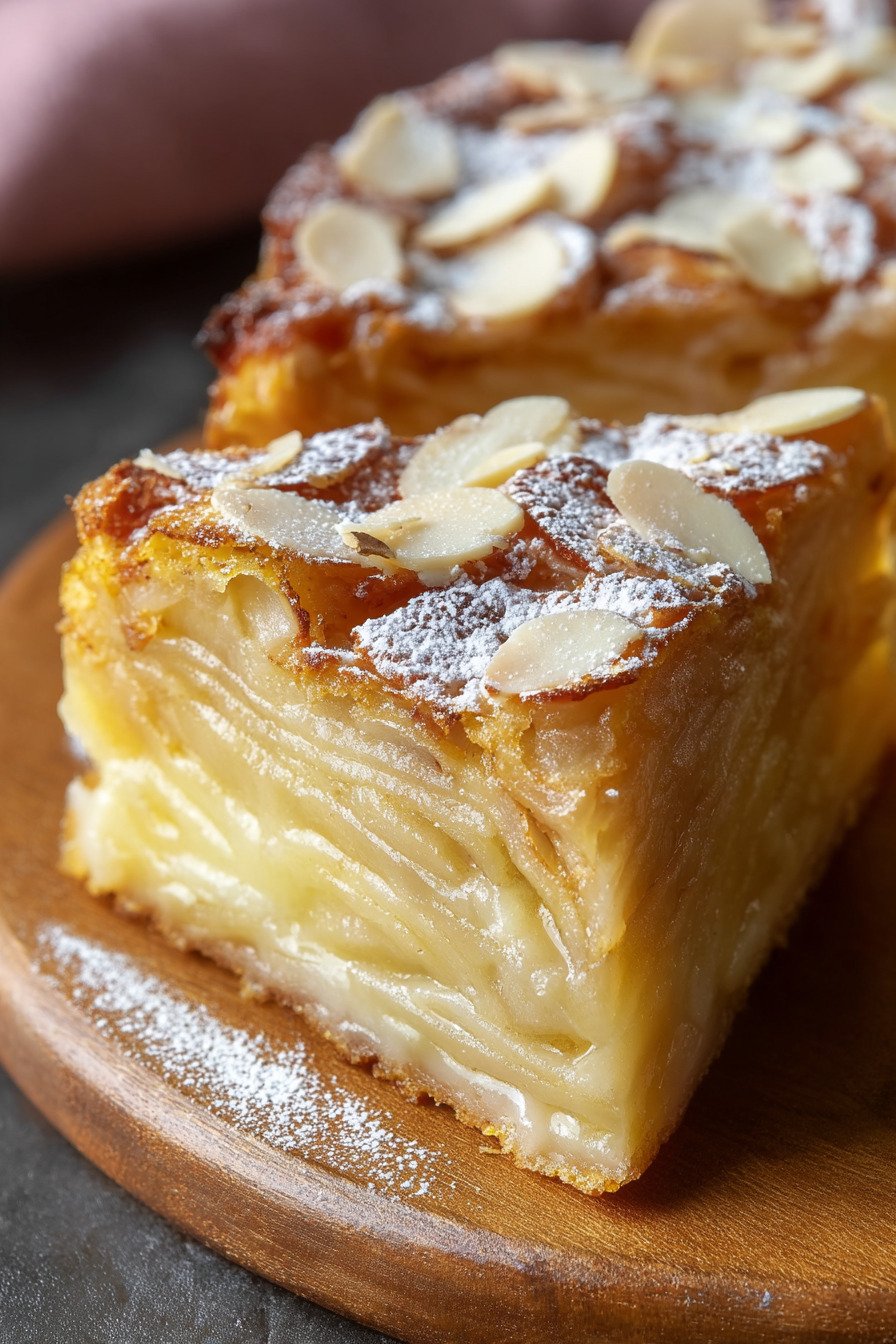 Keep slices thin so the batter binds the stack. Thick slices break the flow and the crumb turns heavy. A steady hand pays off here and gives a clean cut later.
