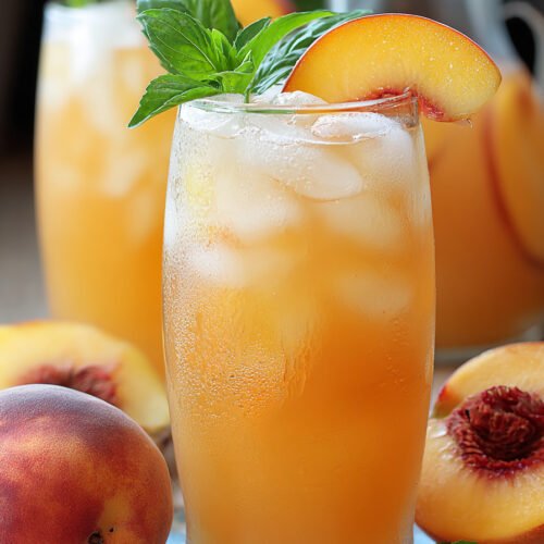 If you have leftovers, store them in a sealed jar or pitcher in the fridge. The taste stays fresh for about three days. Stir it before serving again, since the peach puree can settle at the bottom.