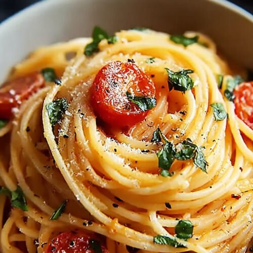 On nights when I don’t want a long cooking session, I grab spaghetti, a handful of cherry tomatoes, and a small stick of butter. The results never let me down. The tomatoes break down, the butter melts into them, and the garlic makes it sing. This is the kind of food that satisfies you without leaving you heavy.
