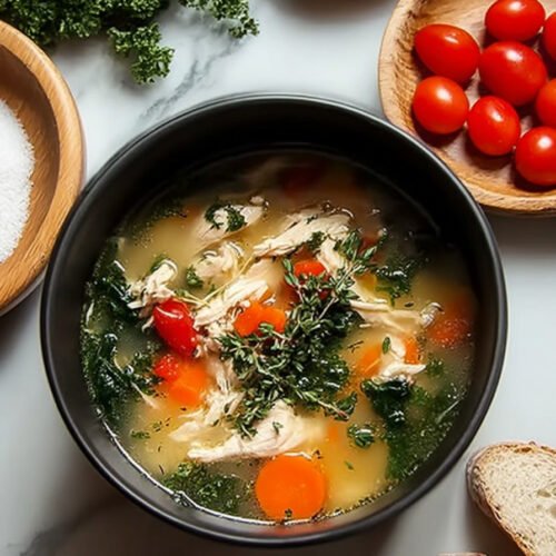 I make this Tuscan chicken soup when I want calm food that still tastes big. Tender chicken rests in a light creamy broth. Spinach and beans give body. Tomato brings a gentle lift. I sip the first spoon and feel warm right away. We cook with simple steps and clean flavors. Onion and garlic start the base. Herbs wake up the pot. Broth carries the flavor. Chicken returns in soft bites. Beans turn the broth silky. Greens finish with a fresh note. I serve it on a busy weeknight and on slow Sundays. The pot holds well for meals later. Friends ask for seconds. I smile and pass the ladle. This is comfort that fits our day. It belongs on any list for Heart Healthy Soup Recipes and it feels like home.