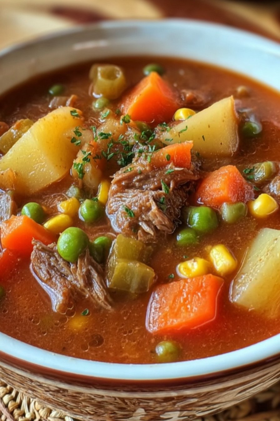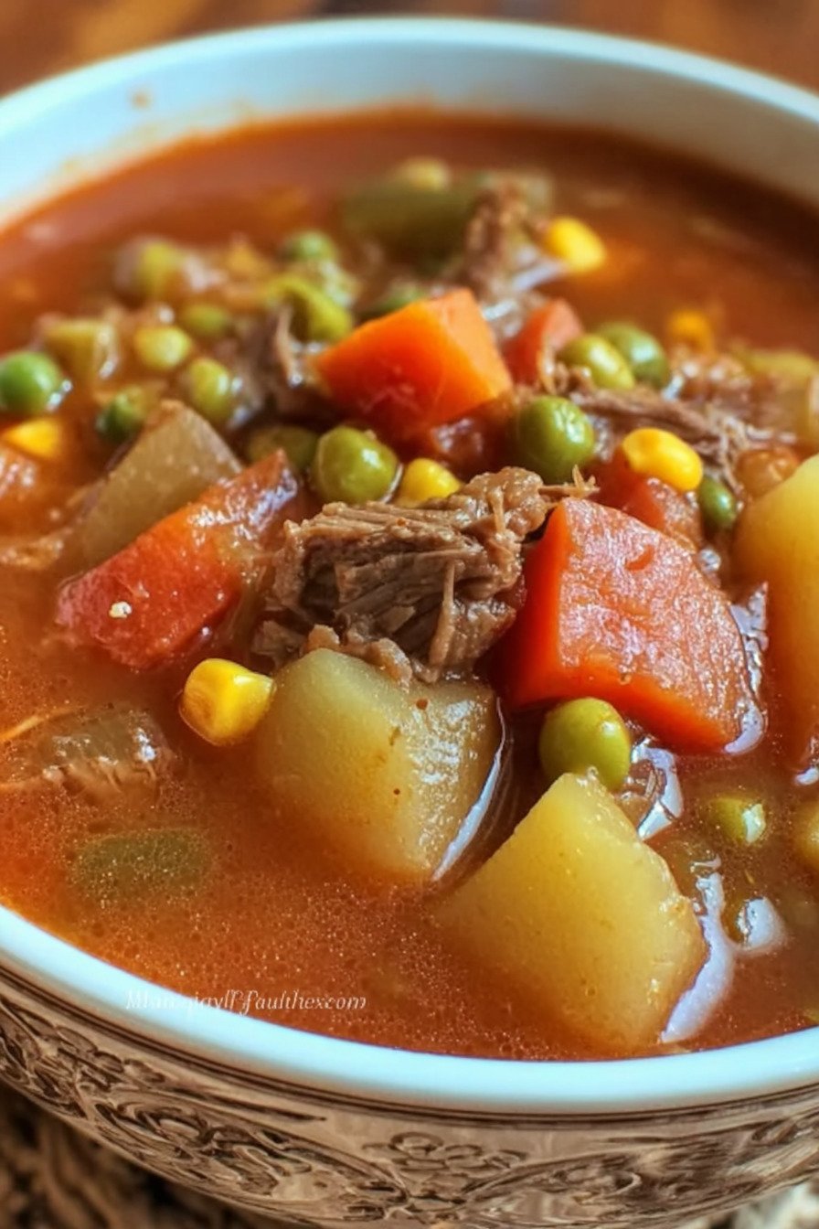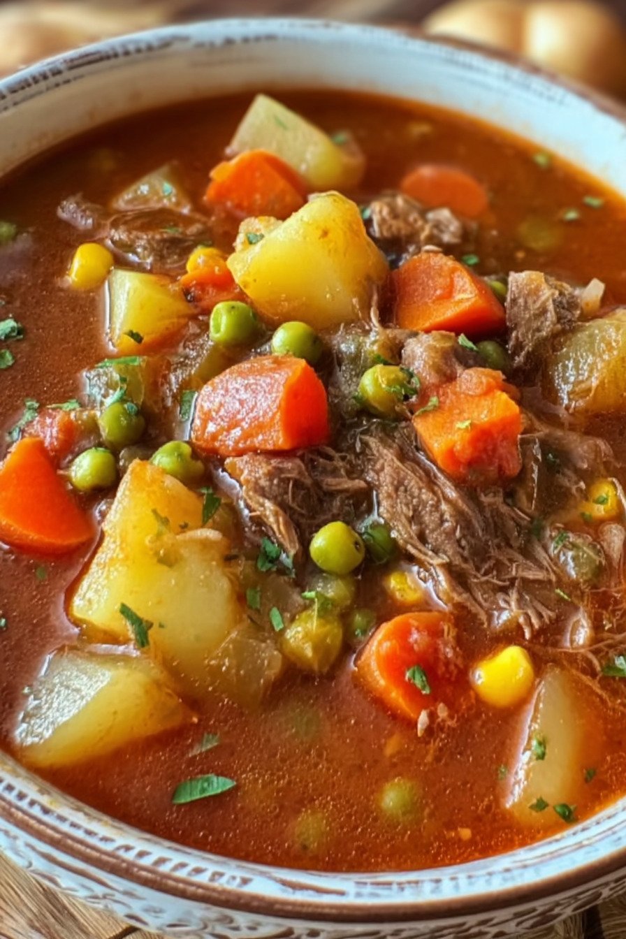 I grew up with a pot of soup on the stove most Sundays. The smell filled the house and pulled everyone to the kitchen. For this post on Nancy Cooks I share a bowl that fits fans of Vegetarian Soup Recipes yet still honors the old family pot of vegetables and broth. I kept the spirit of the classic version and built deep flavor with slow simmered stock, bright carrots, potatoes, corn, and green beans. Readers who search for ideas like 13 bean soup recipe, 16 bean soup recipe, Beef Stock Recipe, Beef Cube Steak Recipes, Baked French Onion Soup, and Bean Recipes Dinner will feel right at home here. When I chop the vegetables I like the quiet rhythm of the knife on the board. Onion first, then carrot, then celery. The pot warms, a little oil goes in, and the kitchen starts to smell like supper already. I taste the broth with a spoon and think of cold days, big sweaters, and a table full of hungry people. This soup cooks slow and steady. Nothing tricky. Just time, good stock, and a handful of pantry staples. One bowl turns into two without much thought. The broth feels rich yet clean. Vegetables stay tender and bright. A spoon brings bits of potato, tomato, and sweet corn in each bite. I often serve it with warm bread and a bit of butter. It feels simple, honest, and filling, the kind of meal that keeps a pot empty by the end of the night.