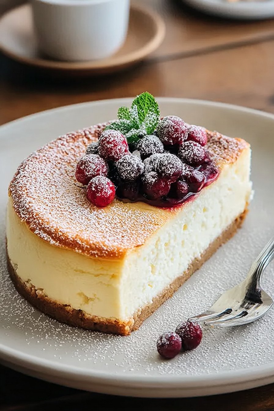 This cheese cake recipe brings a light texture from ricotta and a clean citrus finish. We bake it slow and let it rest so the center sets with a soft wobble. The flavor feels balanced and fresh, not heavy.
