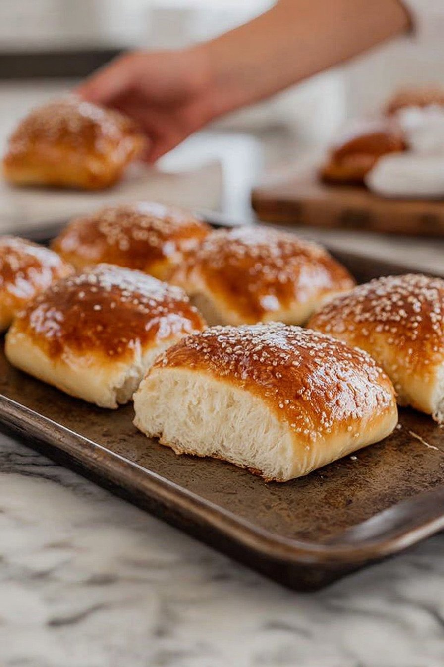 I reach for a cast iron pan. The heat stays even and the crust turns deep gold. Friends grab small slices and pass mustard. We talk and we laugh and we tear off more. The bread feels tender and bouncy. It holds up to soup and to sliders and to eggs at brunch.
