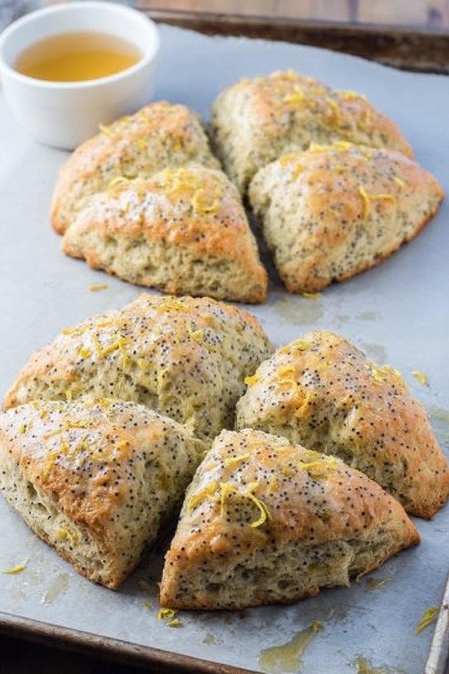 Hi I am Nancy and yes I ate a test scone before the photo set cooled. This scones recipe makes tender triangles with bright lemon and tiny pops from the seeds. If you like a poppy seed bread recipe or even a poppy seed roll recipe you will feel right at home here. I whisk flour butter zest and sugar and I breathe in that clean citrus air. The dough feels soft and a little sticky so I nudge it with flour and cut neat wedges. They bake up with crisp edges and a soft middle. When the lemon glaze slides over the warm tops I grin like a kid who found the extra cookie. You and I both know coffee helps but these stand on their own. Craving a lemon scones recipe today but saving a cheese scones recipe for brunch next week I get it. Some days call for a cinnamon scones recipe or a chocolate scones recipe. Bake what fits your mood then come back and tell me how it went. I will cheer either way.