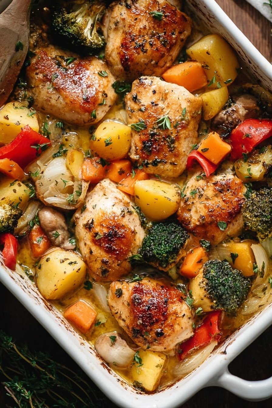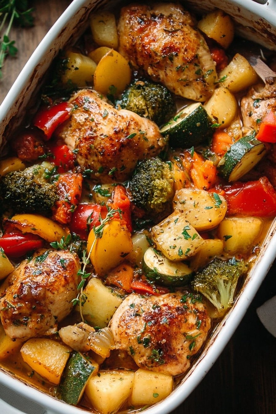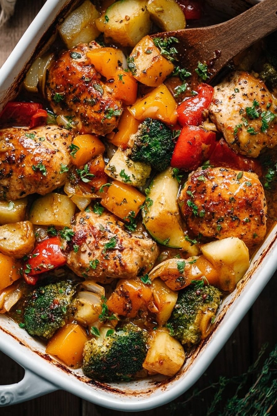 This bake brings tender chicken and bright veg into one warm dish. The steps stay clear. The flavor sits clean. The result lands light.