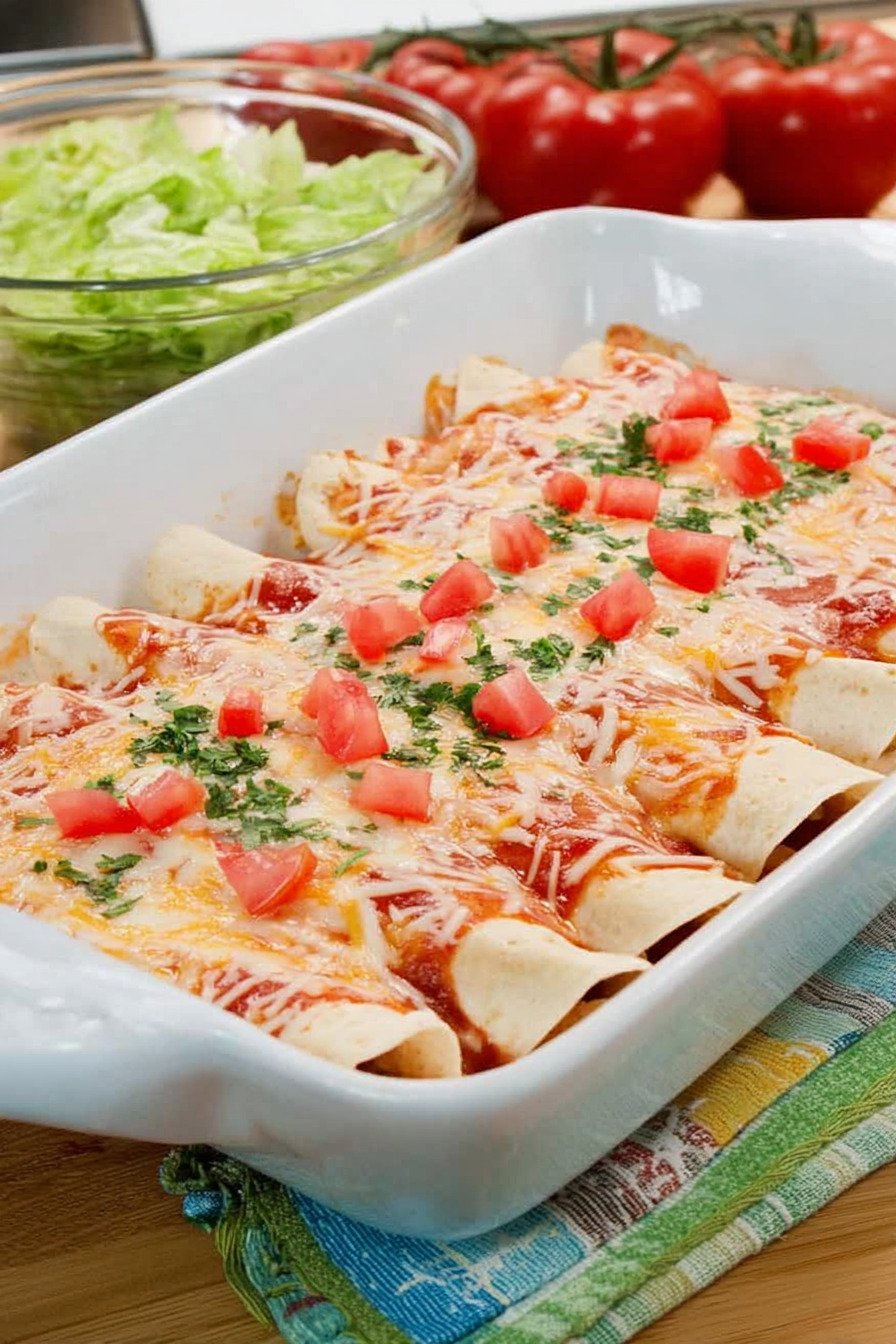 Nancy here and yes I steal the last corner piece. I build this with pantry staples so stress stays low. The dish brings the feel of a cozy place without a long cook. It hits the note for chicken enchiladas and for healthy enchiladas fans.