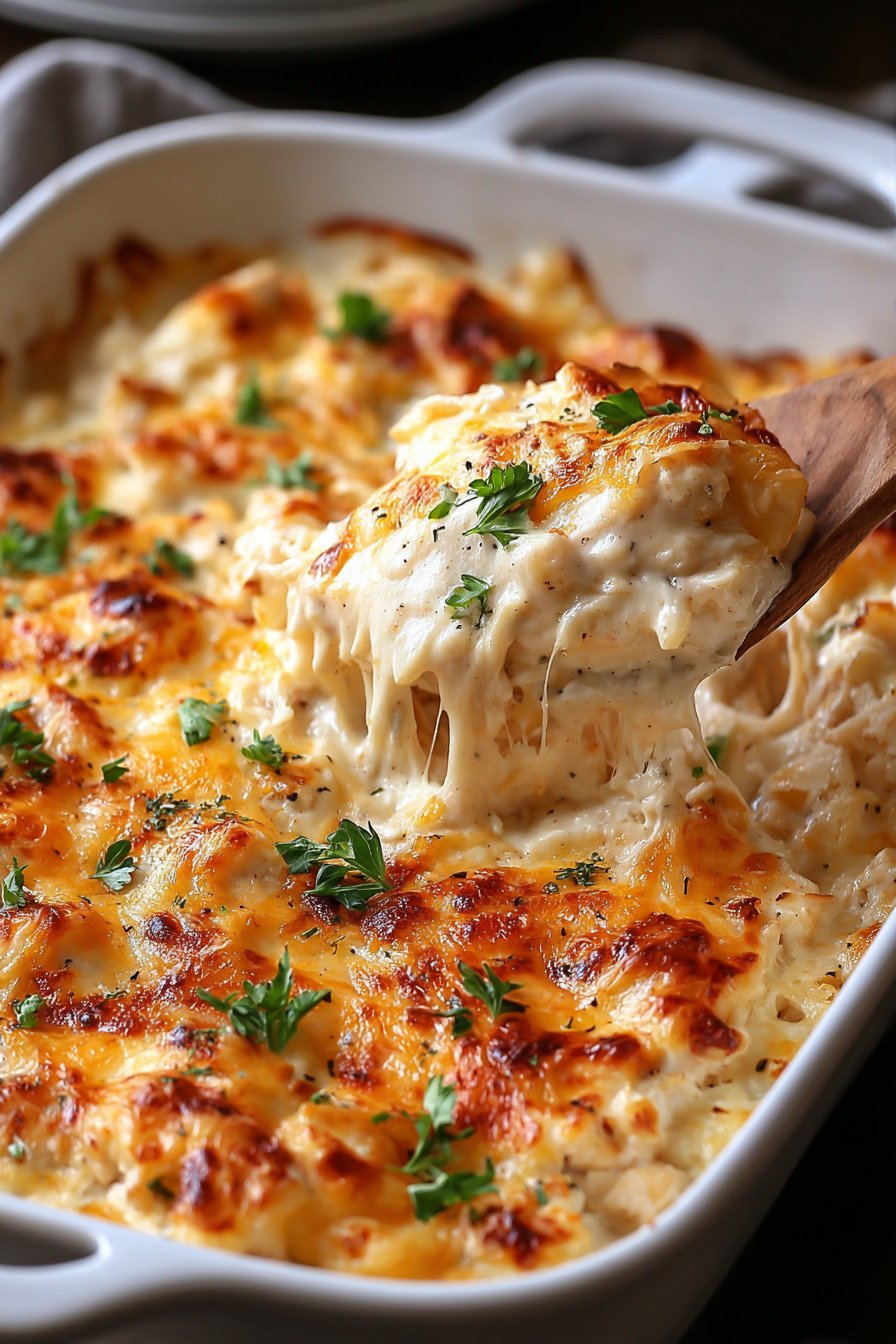 You know what? I’ve been making this Million Dollar Chicken Casserole for years, and my family still goes absolutely bananas every time it comes out of the oven. We’re talking about Chicken Pasta Recipes that actually live up to the hype here. The buttery cracker crust gets all golden and crispy, the cheese gets melty and gooey, and that creamy filling? Pure comfort food magic. What I love most about these Chicken Casserole Recipes is how they rescue me on those nights when I’m too tired to think straight. I’ll throw together leftover Baked Chicken (or grab a rotisserie bird from the store, no judgment), mix it with some cream and cheese, and boom! Dinner’s done. My kids think I’m some kind of culinary wizard, but honestly? This is one of those Boneless Chicken Breast Recipes that practically makes itself. The best part? These Baked Pasta Recipes are total crowd pleasers. I’ve brought this casserole to more potlucks than I can count, and people always corner me asking for the recipe. Last month, my neighbor Karen tried to claim she invented it at her book club meeting. Can you believe that? Anyway, whether you’re feeding picky eaters or impressing your in-laws, this Million Dollar Chicken Casserole has your back. Trust me on this one.