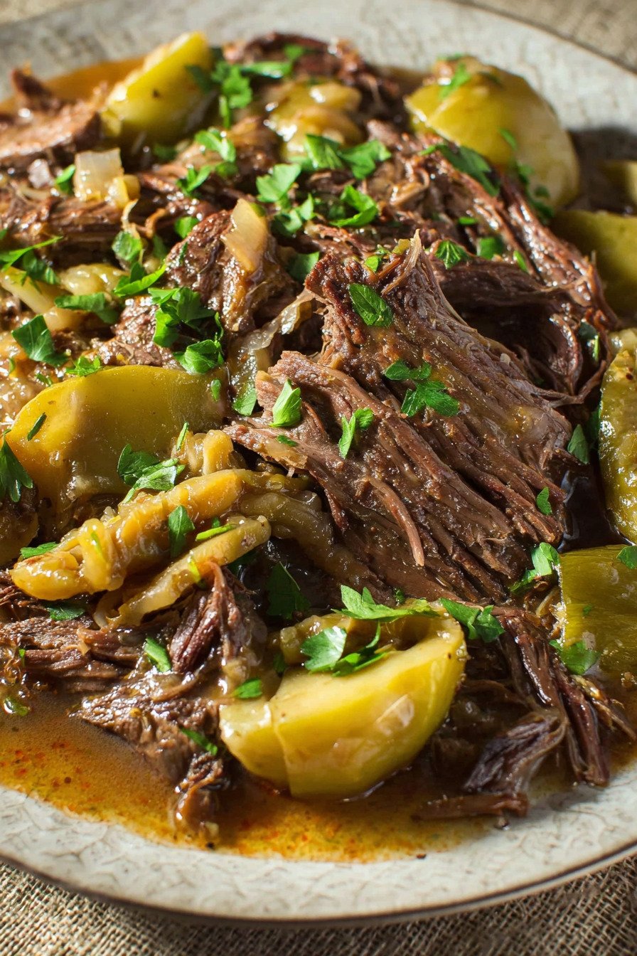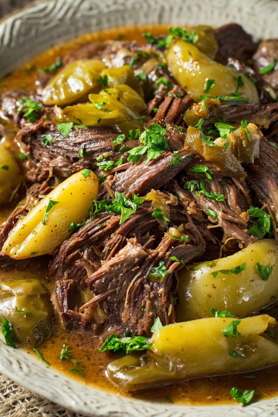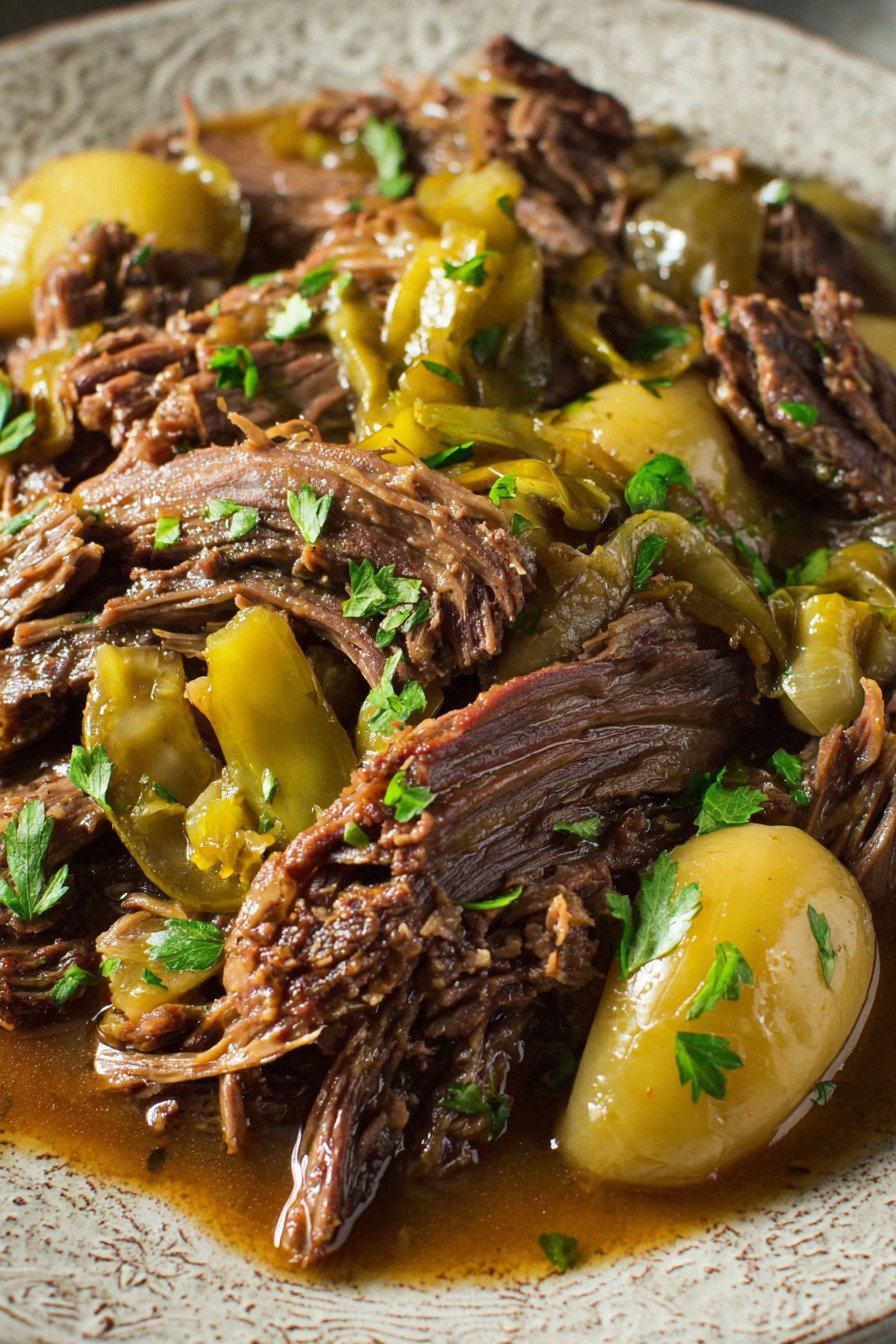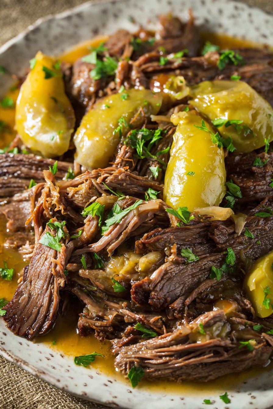 Pepperoncini Peppers Bring a subtle tang and mild heat that cuts through the richness and gives the dish its distinctive taste.