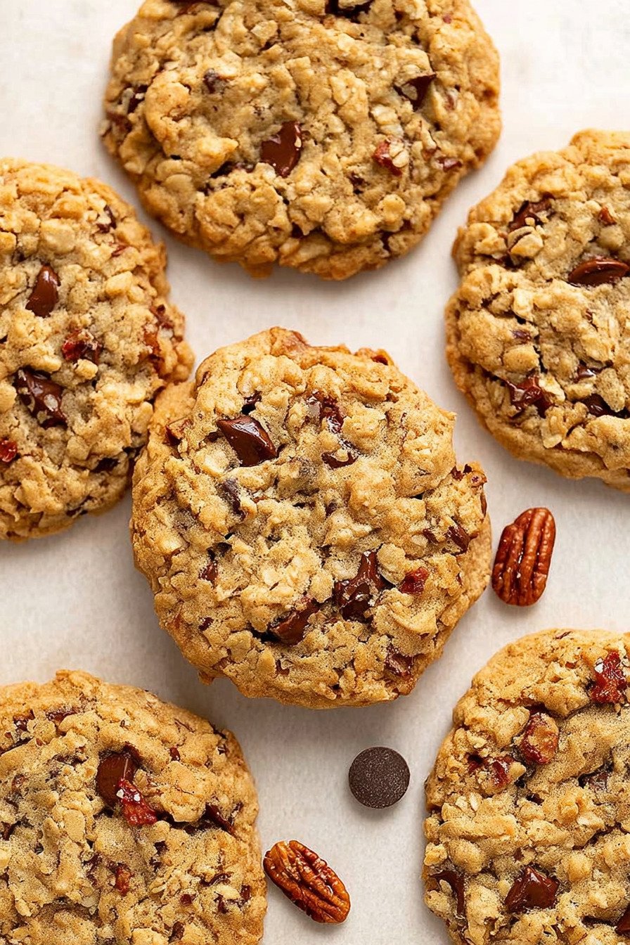 Let me tell you about these oatmeal chocolate chip cookies that changed everything in my kitchen. I was trying to perfect a classic oatmeal chocolate chip cookie recipe when I stumbled onto something way better. Think of your favorite oatmeal chocolate chip cookies recipe, but loaded with toasted coconut and crunchy pecans. What makes this perfect chocolate chip cookie recipe stand out? The browned butter. That’s the secret nobody talks about. Last week, my neighbor knocked on my door asking if something was burning. Nope, just me making another batch of what she now calls the best chocolate chip cookie recipes she’s ever tasted. The smell of that butter browning gets me every single time. These aren’t your typical crumble chocolate chip cookie recipe treats. They’re thick, chewy, and packed with so much good stuff that one cookie feels like a whole dessert. Now, if you’re looking for an oatmeal chocolate chip cookie recipe healthy version, I’ve got notes at the bottom about cutting back sugar. And for my gluten-free friends seeking an oatmeal chocolate chip cookie recipe gf option, I’ve tested this with gluten-free flour and it works like a charm. Grab your mixing bowl and let’s get started!