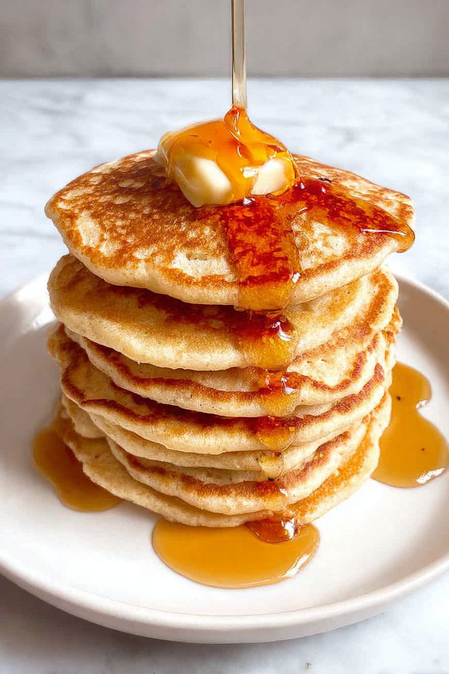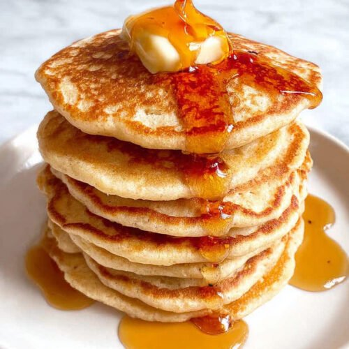 Swap dairy milk for oat milk if you like. Macros shift a touch yet the cakes still land as fluffy protein pancakes.