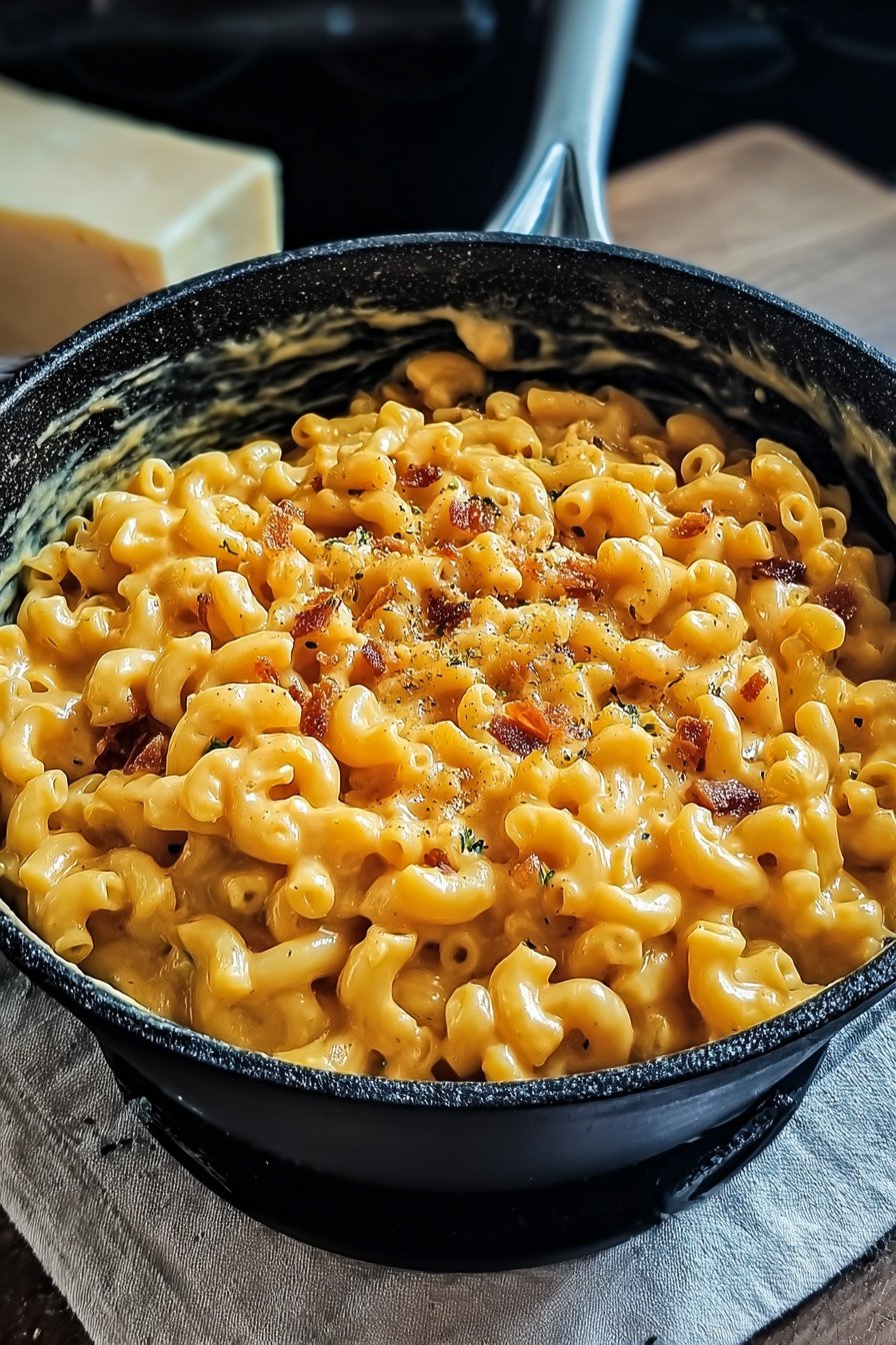 I call this my back pocket mac and cheese recipe since I can cook it without much thought. We measure, stir, taste, and adjust. That is it. The pasta simmers in milk, and the starch helps thicken the sauce. No oven, no extra pans, no stress.