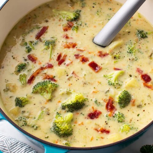 I make potato soup when the day feels long and I want a bowl that hugs back. Steam rises. The spoon clinks. The first sip goes warm and steady. You taste buttery spuds and tender broccoli and you keep going. I keep a simple rhythm on the stove and the kitchen smells like home. This pot leans creamy without fuss. We call it creamy potato soup on busy nights. I cook it as a simple potato soup recipe that anyone can follow. My pot lives on the front burner and yes this is a potato soup recipe stovetop that does not ask much. We just stir. We taste. We smile. We eat soup and we slow down a bit. A quick story. I once tried copying a chicken salad chick potato soup recipe and my family missed the broccoli. So now I fold in bright florets and the bowl looks alive. If you like broccoli soup recipes you will like this one too. We mop the last drops with bread and the table goes quiet in that good way.