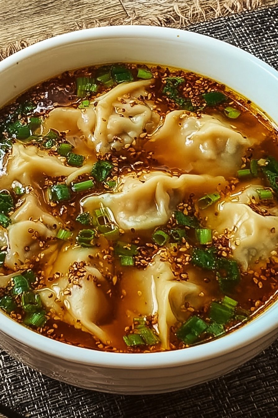 I love a bowl of Soup Recipes that feels warm and simple. This potsticker soup came from a late night in my kitchen when I wanted comfort with very little work. A bag of frozen dumplings waited in the freezer. Broth simmered on the stove. The smell filled the room and made the house feel calm. We cook dishes from many places at home and I enjoy learning about Asian Recipes Authentic style meals. This bowl leans toward Authentic Chinese Food yet stays friendly for a busy weeknight. It fits right beside other Asian Food Recipes we make often. One night we talked about Baked French Onion Soup at the table and laughed about the wild name 7 can taco soup recipe easy. Food brings those small fun moments. The dumplings float in rich broth with ginger garlic and greens. I like to scoop one with a spoon and watch the steam rise. The broth tastes light yet full. You can cook this pot fast with simple steps. When I need calm food that still feels special I return to this potsticker bowl. It sits proudly among my favorite Soup Recipes and it never lets me down.