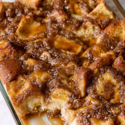 Mix the custard and bread and hold it in the fridge for eight hours. The soak deepens and the crumb turns lush. When ready to bake bring the bowl to room temp so the bake time stays accurate. Busy families like this plan since it spreads the work.