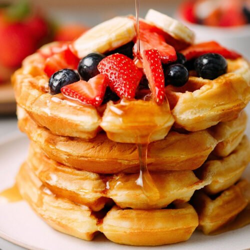 Leftover waffles keep well in an airtight container in the fridge for a few days. They reheat quickly in the toaster or oven.