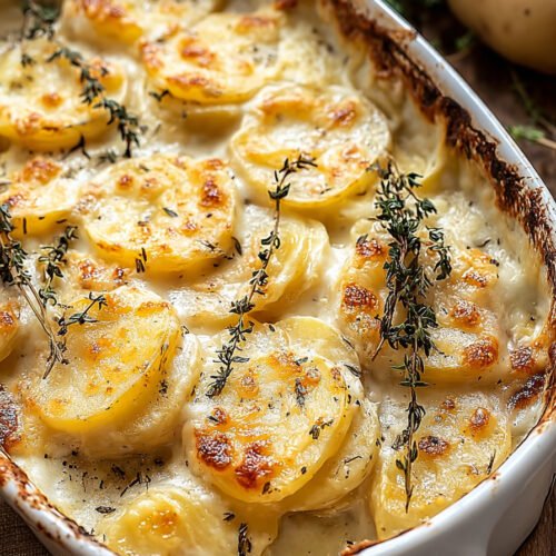 This meal feels friendly. The plan follows a short path with sliced potatoes a small pot with milk and cream and a handful of sharp cheddar. The sauce turns smooth and holds the slices in neat stacks. My kids once called it creamy potato casserole and the name stuck. I laughed and kept it. That small joke still makes me reach for this pan on tough days.