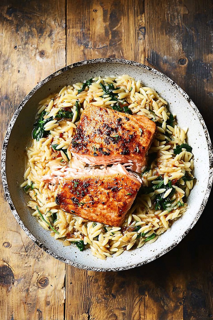 I cook this on one pan and I grin the whole time. Tender salmon sinks into lemon orzo. Spinach wilts and makes the pasta look lush. The result feels bright and calm. The dish fits busy nights and slow Sundays. We eat and we relax. We keep the method simple. Sear the salmon. Toast orzo. Add broth and let it bubble. Stir in spinach and Parmesan. The lemon lifts every bite. The texture stays creamy and light. No mess. No stress. Just dinner that works. Here we chase flavor with clear steps and short waits. The main idea sits in the name spinach dinner recipes. It links with 1 Pot Meals and 3 Ingredient Dinner Recipes and 5 Ingredient Or Less Recipes and Baked Salmon Recipes and Lemon Orzo Recipes and Spinach Dinner Ideas. You bring a spoon. I bring a smile.