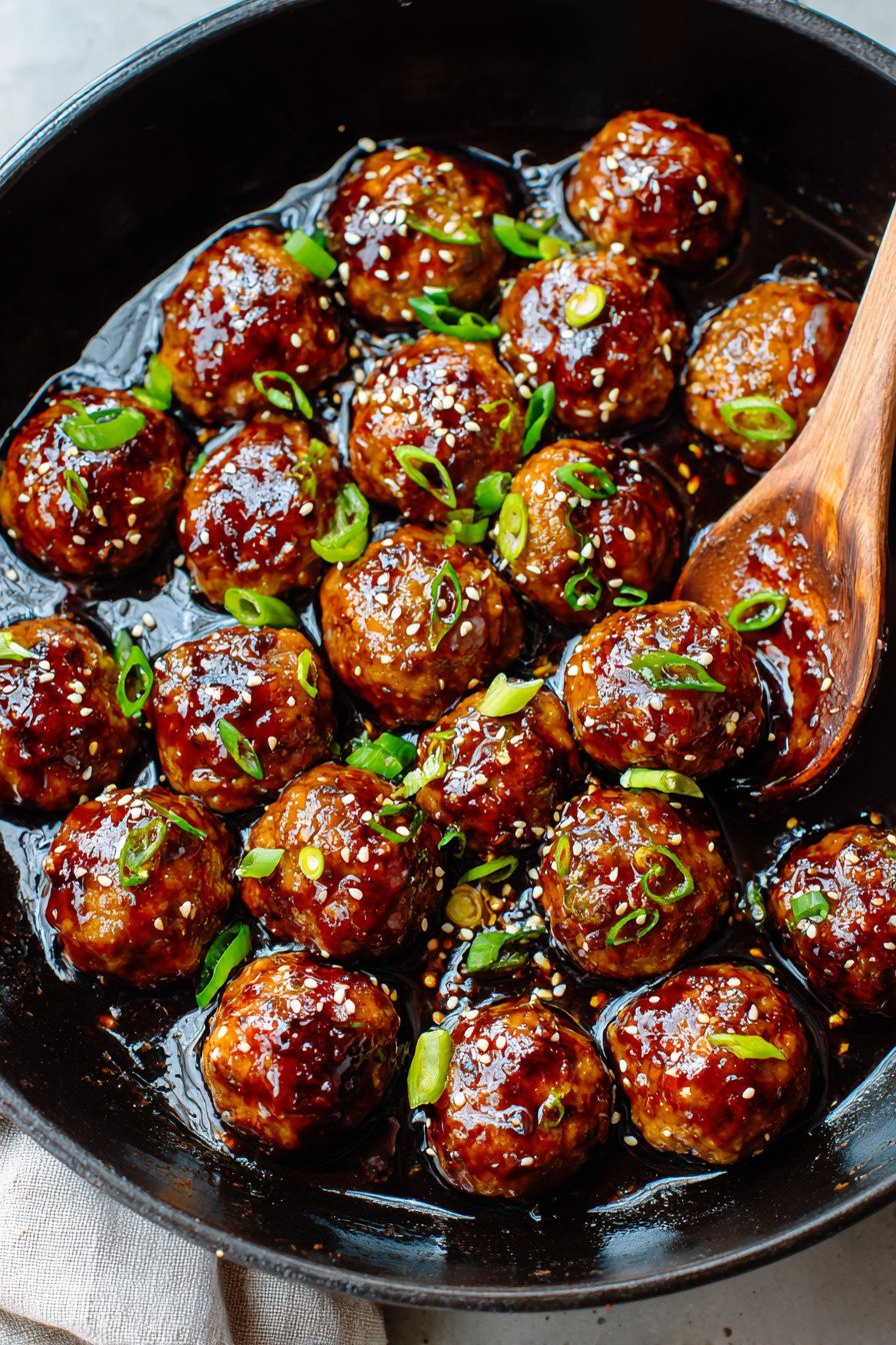 • 2) Easy Sticky Honey Garlic Meatballs