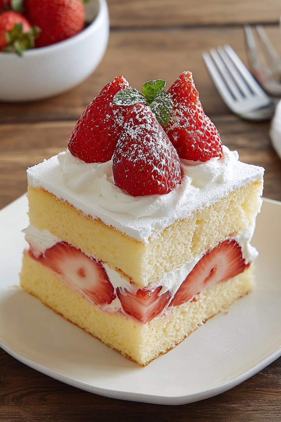 I baked this strawberry cake on a quiet Sunday afternoon. The kitchen smelled of butter, warm eggs, and sweet berries. I kept thinking of a japanese strawberry shortcake recipe I once tried in a tiny café. That memory pushed me to mix a light sponge and fresh cream at home. If you enjoy strawberry shortcake, this cake will feel familiar and comforting. I tested many strawberry shortcake recipes before this version felt right. The sponge stays soft and the cream sits light on the tongue. Fresh berries give the cake bright flavor. Friends who visit ask for the best strawberry cake recipe I know. I smile and bring out this one. A slice disappears fast. Some days I want a simple treat. A strawberry shortcake recipe easy enough for a calm afternoon works best. I even played with ideas from a strawberry shortcake cookies recipe just for fun. In the end I came back to this soft strawberry cake. It feels gentle, sweet, and honest. Bake it once and the scent of berries and cream will stay in your mind.