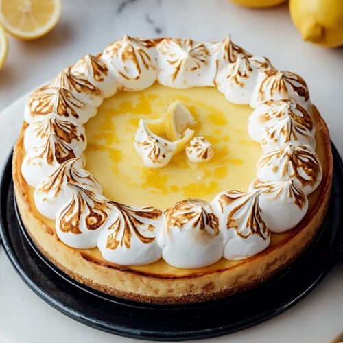 This cheese cake recipe brings together bright citrus and soft cream in a way that feels honest and real. I built this lemon meringue cheesecake after craving a bold lemon cheesecake recipe that still felt like a true cheesecake dessert recipe. The layers stack into a triple layer cheesecake with a light meringue topping recipe that browns at the top and smells like sunshine. If you love lemon dessert recipes, this one will stay with you. I start with a simple crust that snaps when you cut it. Then I blend cream cheese with fresh lemon zest and juice. The kitchen fills with that sharp sweet scent that makes you pause and smile. I have made this for birthdays, quiet Sundays, and one random Tuesday when I just needed cake. Each time we sliced into it, the creamy center held firm yet felt smooth on the tongue. The meringue sits on top like a soft cloud. I whip the whites by hand some days, electric mixer on other days, and watch them turn glossy. When the tips catch a bit of color in the oven, I know we are close. It looks dramatic, tastes bright, and still feels like home baking. Nothing fancy, just good cake made with care.