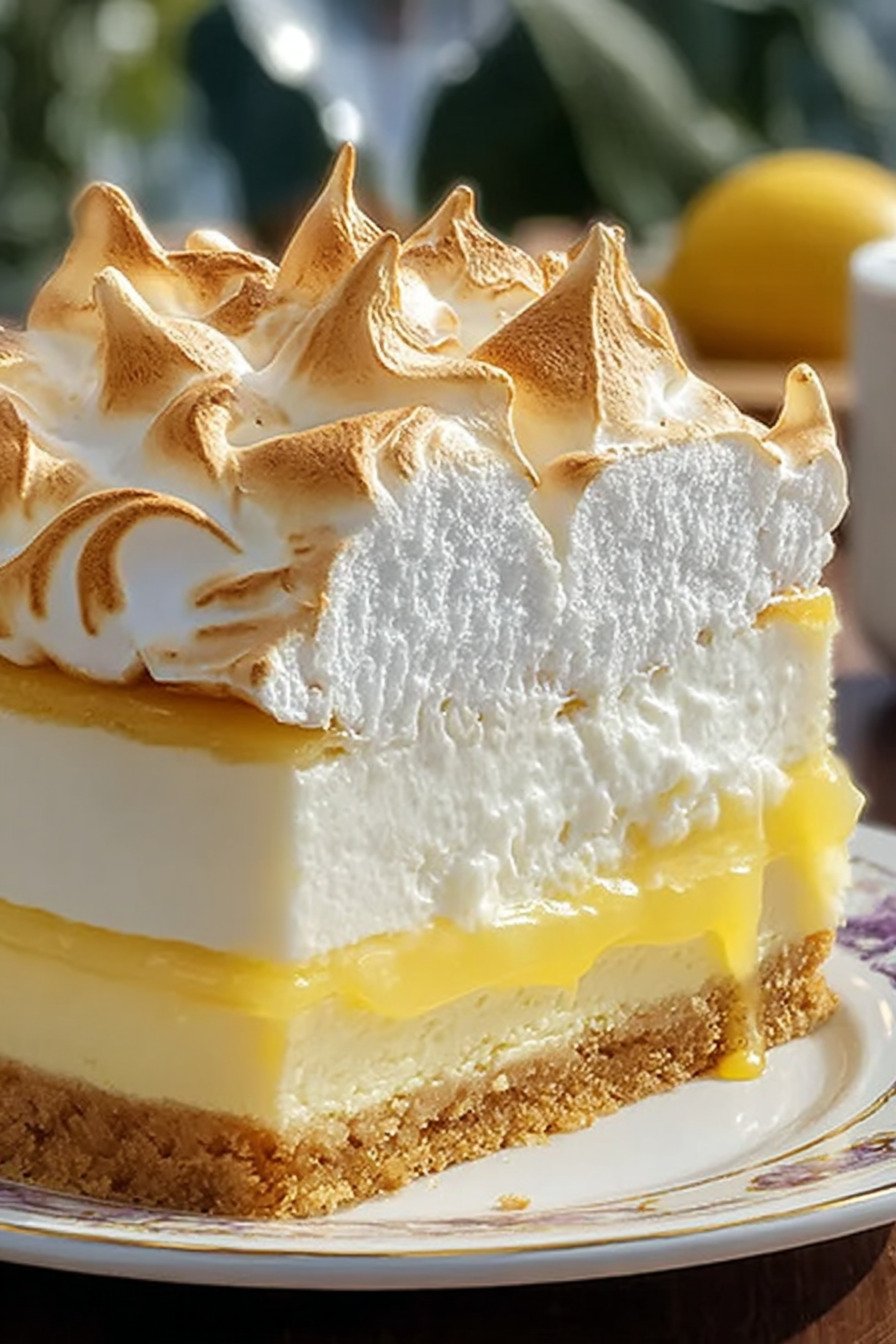 - This cheese cake recipe combines creamy cheesecake, bright lemon flavor, and fluffy meringue for a bakery-style dessert at home.