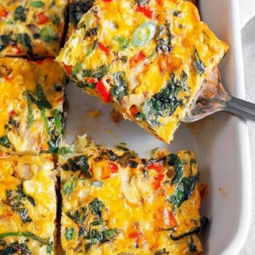 One trick I learned is to slightly underbake it if you know you’re making it ahead. Take it out when it’s just barely set in the middle. When you reheat it later, it’ll finish cooking and won’t get overdone and rubbery. This works great when you’re bringing it to a brunch or potluck and need to transport it cold.