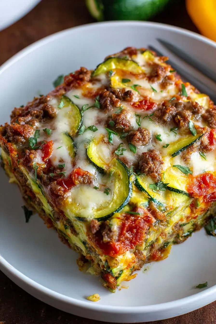 I grew up loving Friday night pizza, and now I get the same cozy bite with a pan of this zucchini pizza casserole. It fits Keto Healthy Recipes without feeling fussy or strict. The crust is tender and light, the top is all cheese and beef, and every slice tastes like home after a long day. We press the zucchini well, then build the layers fast. That move keeps the base firm and helps the edges turn a little golden. On top, a simple sauce hugs onions, mushrooms, bell pepper, and beef. The smell fills the kitchen, and I always sneak a corner piece while the rest cools. It sits well on any weeknight plan and works for company too. If you track ideas for zucchini casserole recipes healthy or save zucchini casserole recipes for later, this one earns a star. It also checks the box for squash and zucchini recipes casserole and slides right into Keto Dinner Recipes and keto dinner recipes lists. I keep it filed under vegetable casserole recipes at Nancy Cooks. We make it when the garden is busy, and we make it when we just want pizza vibes without the dough.