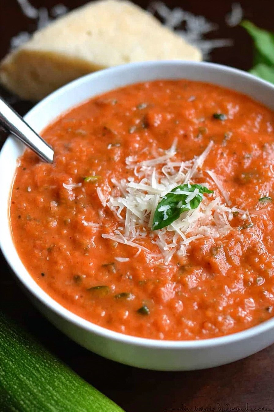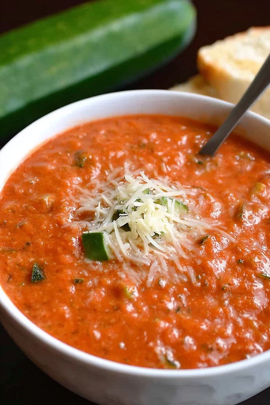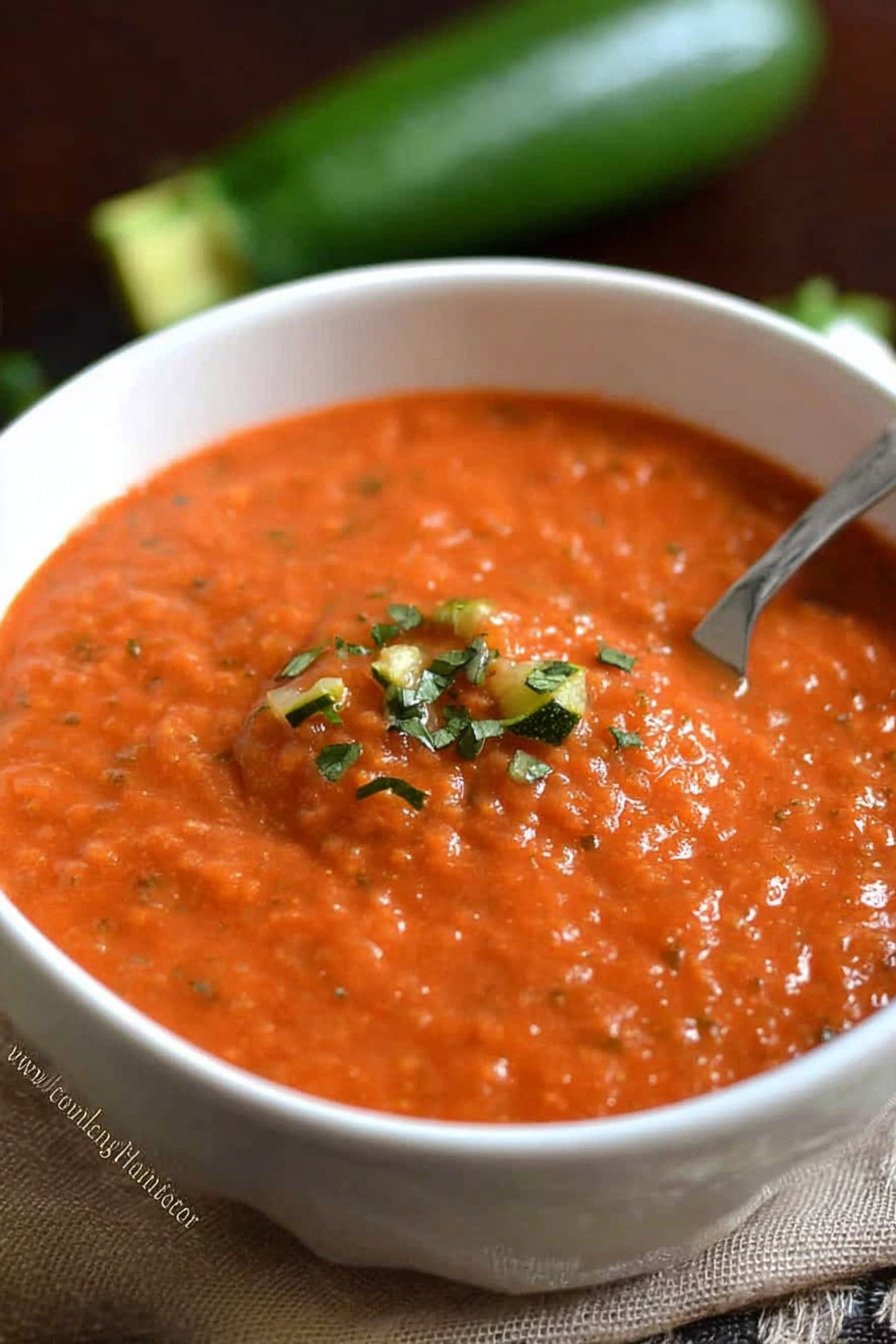 Zucchini Fresh zucchini gives the soup body and a gentle green flavor that blends well with tomato. I like to chop it fresh and drop it straight into the pot. Small steps like this keep the flavor honest and simple.